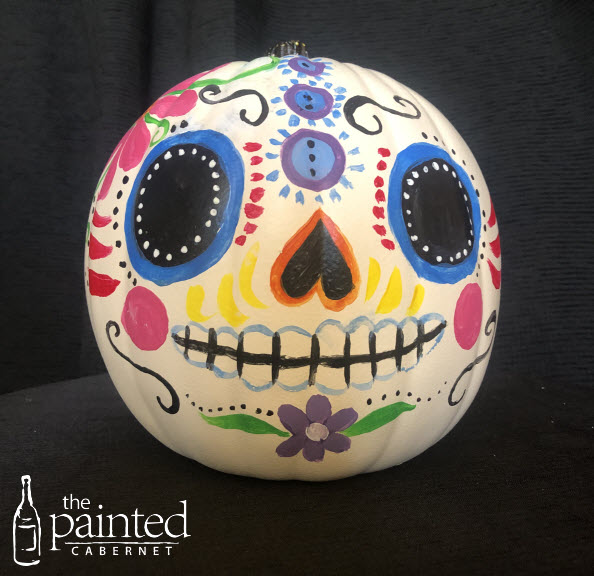Sugar Skull Pumpkin Paint your own Sugar Skull on a 9" decorative pumpkin! Includes a free glass of wine or beer!