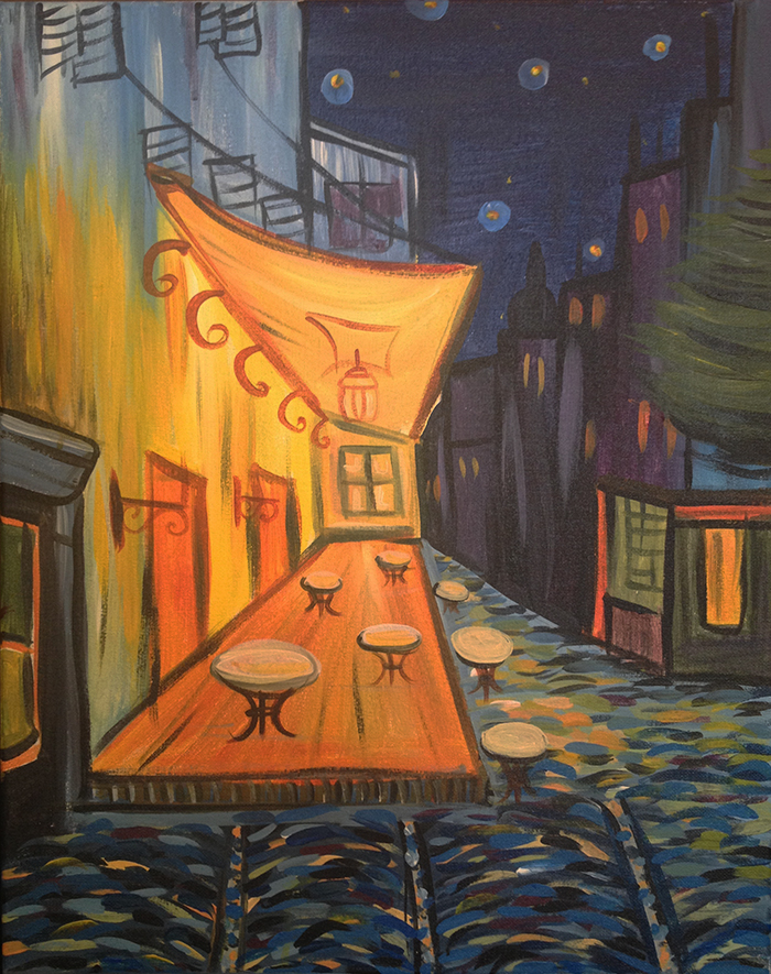 Van Gogh Cafe Sold Out SOLD OUT. Please call to be put on waiting list.NOTE: This class can take up to 3 hours. Featured Artist: Sami! 6:00pm
